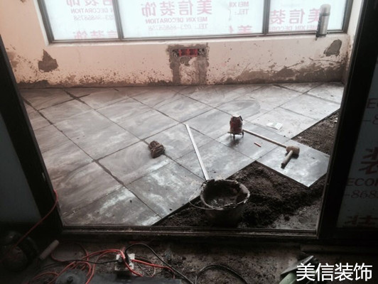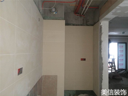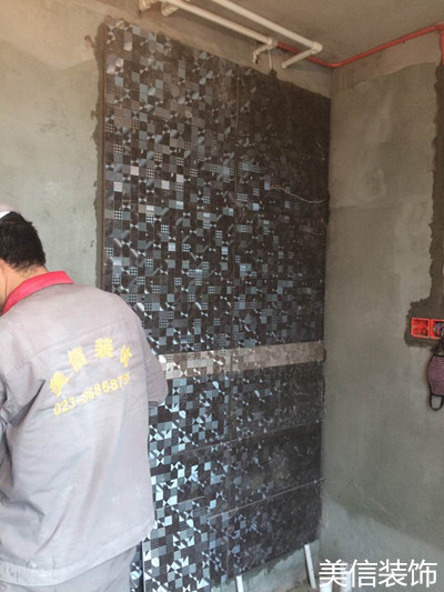 重慶美信裝飾工程設(shè)計 融景城8-X-4泥工貼磚現(xiàn)場