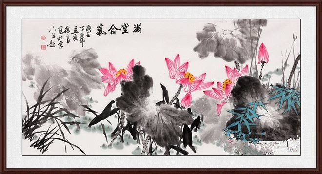 荷花,一直是清高的象征,花葉清秀,純潔典雅,花香四溢,沁人心脾,自古就受到人們的喜愛和追捧,給人以精神上的享受和帶來視覺上的美感。又因它清香久遠,秀雅清香,寄托著人們心中潔身自愛、不同流合污的高潔追求。荷花也是蓮花,寓意連年有余、和和美美、和氣生財,也有祝家庭和睦、和順等,掛于夫妻房間祝夫妻關系美滿,恩愛幸福。家中懸掛一幅荷花圖作品,象征主人清高、廉潔等。