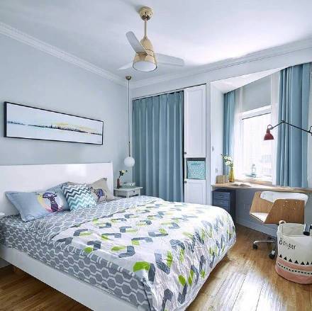 臥室在黑白之外加入了糖果綠,對比強烈的色彩并不會產生沖突感,而是表現(xiàn)出主人明朗活躍的個性??看暗臅?,彌補了沒有陽臺的缺陷,靜聽雨聲,想來也是不錯的體驗。